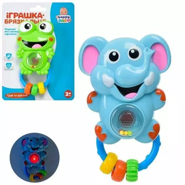 Брязкальце HB 0018 AB тварина, 2 види, муз., світло, бат. (табл.), лист, 15-20-4,5 см.