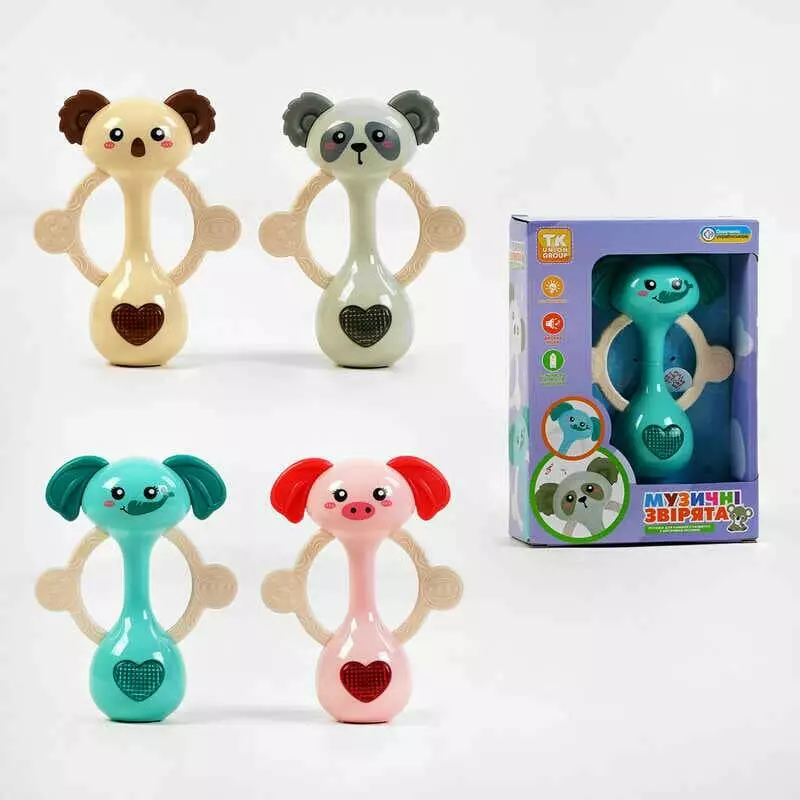 Брязкальце на батарейках “Музичні звірята” TK - 51625 (96) ""TK Group"", 4 кольори, ОЗВУЧУВАННЯ УКРАЇНСЬКОЮ МОВОЮ, пісні, підсвічування, в коробці, МІКС