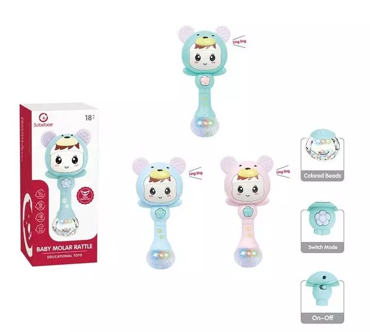 Коли у малюка починається етап пізнання зовнішнього світу, саме таке брязкальце допоможе йому в цьому. Цікавий дизайн та барвисті кольори захоплять увагу вашого малюка з першого погляду. Милі прорізувачі приберуть дискомфорт та знімуть надокучливий свербіж у період коли ріжуться зубки, а дзвінке брязкальце заспокоїть і відволіче. Особливості: - іграшка виконана у вигляді милого ведмедика; - обладнана прорізувачами; - на ручці є прозоре коло з наповненням всередині. - іграшка містить 6 пісень та яскраве підсвічування; - пісні перемикаються при натисканні на кнопку у вигляді квітки; - працює від 2-х батарейок типу “ААА” (не додаються).