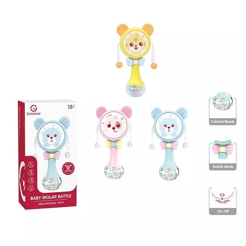 У кожного малюка приходитиме етап пізнання зовнішнього світу і саме такі ручні брязкальця допоможуть йому в цьому. Іграшка, яка приверне увагу будь-якої дитини завдяки свому неймовірному дизайну. Кожна іграшка сповнена функціоналом, який обожнюють усі діти. Особливості: - відповідає технічному регламенту безпеки іграшок; - іграшка виконана в милому образі ведмежа, яку легко тримати у руці; - має музичний функціонал, працює від 2х батарейок типу ААА (до комплекту не входять); - іграшка має декілька веселих мелодій і звуків; - головна музична особливість, це колотушка.