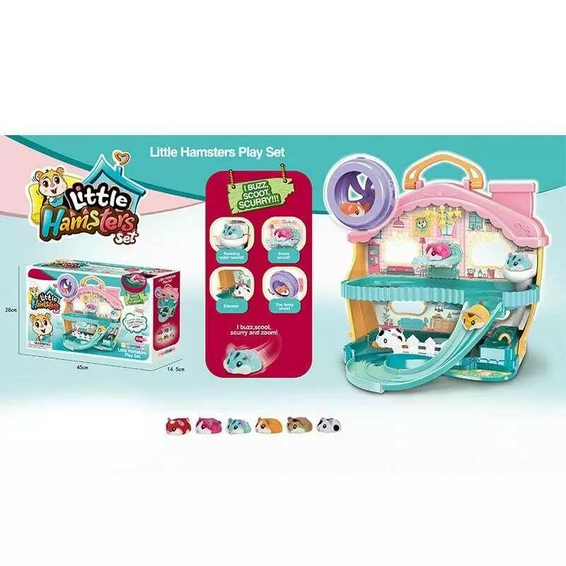 Будиночок 82020 (12) гірка, ручний ліфт, звук, колесо для бігу, хом’ячок бігає, від батарейок, в коробці