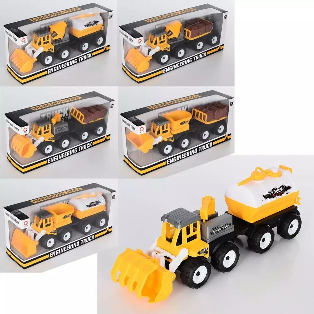 Будтехніка 9943-3-4 інерц., з причепом, рухомі деталі, 6 видів, кор., 30,5-13-8,5 см.
