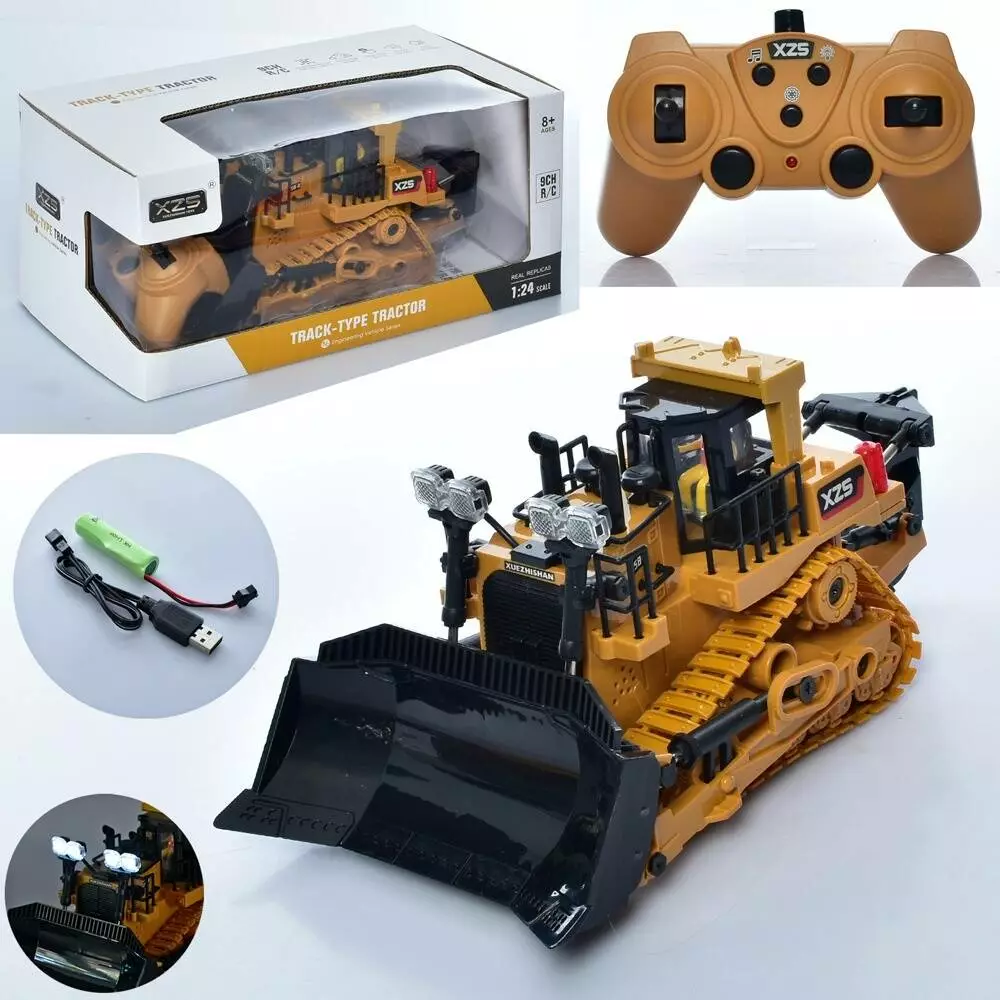 Бульдозер BC1030 радіокер., акум., 1:24, рухомий ківш, USB, муз., світло, кор., 29-13,5-16см.