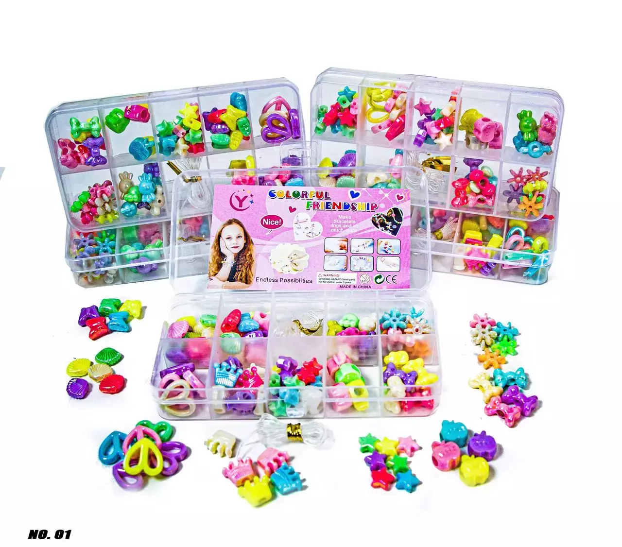 Відчуйте себе дизайнером! Плетіння прикрас своїми руками – зараз дуже популярне і у дітей, і у дорослих. Яскравий набір для творчості – це гарний навчальний інструмент, який може допомогти дітям покращити координацію рук та очей, покращити практичні здібності, покращити уяву дитини, тренує творчі здібності та логічне мислення. Цей набір для виготовлення браслетів та обручів своїми руками включає різні види бусинок різних кольорів і форм. Акрилові намистини з великими отворами, тому дитина зможе легко просмикнути через них мотузку. Набір поставляється в красивому прозорому пластиковому контейнері з 10 відділеннями для зберігання бусинок. Завдяки цьому дуже зручно знаходити саме ті намистини, які потрібні для створення аксесуара. Ще в наборі є нитка, яка є еластичною мотузкою.