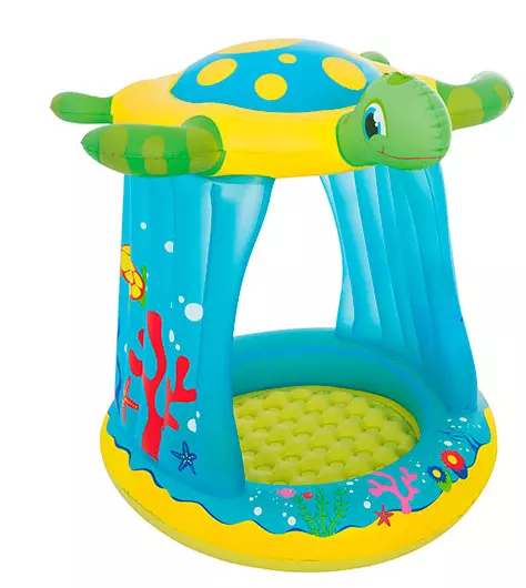 Це ігровий центр принесе море задоволення Вашій дитині. У нього м'які барвисті надувні борти, сам ігровий центр імент дах у вигляді черепашки. Дітлахи з величезним задоволенням придумають різноманітні ігри в цьому басейні. На м'якому підлозі дитині буде комфортно, навіть якщо конструкція стоїть на землі. Дах у формі черепашки захистить дитину від сонця. У такому басейні дитина буде з радістю плескатися цілий день. Особливості басейну Bestway Черепашка: вік: від 2 років; розмір: 109х96х104 см; обсяг: 26 л.