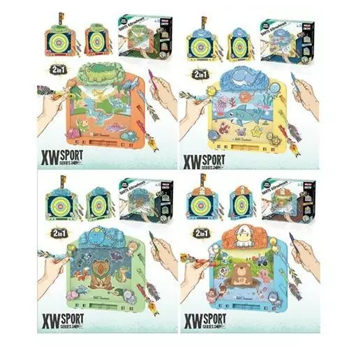 Дартс 9302-1-4 2в1-дошка для малюв., магнітна, фігурки, стріли, віск.олівець,4 види,кор.,40-34,5-5см