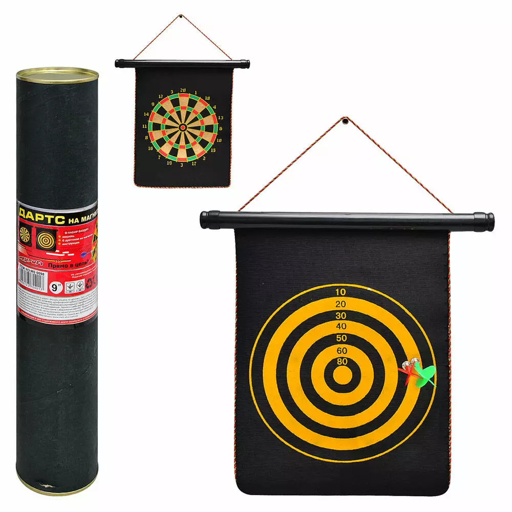 Дартс MS 0098 9 дюймів, магнітний, дротики з магнітом 2 шт., двухсторонній, тубус.
