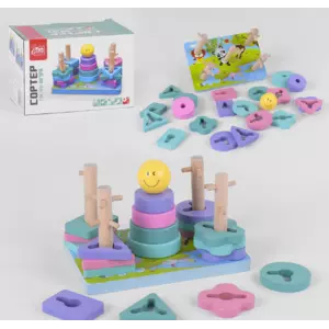 Логічна дерев'яна гра - це дерев'яна підстава з 4 оригінальними стовпчиками і різноманітними геометричними фігурами. Завдання дитини підібрати необхідні фігури і нанизати на кожен стовпчик. Стовпчики відрізняється один від одного своєю будовою і відповідає отворів. Також на іграшці розташована пірамідка з 4-х кілець. Гра чудово впливає на розвиток корисних навичок дитини, на тренування дрібної моторики і сенсорного сприйняття. В процесі гри дитина буде вивчати колір, форму, розмір, рахунок і багато іншого.