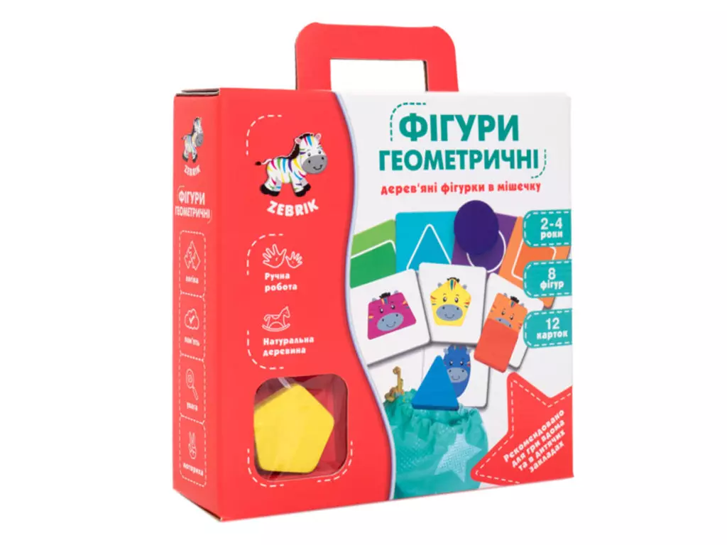 Яскраві і барвисті геометричні фігурки відразу привернуть увагу дитини. Фігурки Vladi Toys - ручної роботи і виготовлені з натуральної деревини, розвиває дрібну моторику, пам'ять, увагу, тактильні відчуття і логічне мислення. Так само відмінний спосіб весело і з користю провести спільне дозвілля. В комплекті: 8 геометричних фігур. 12 карток. Мішечок. Мова: українська. Рекомендовано для дітей від 2 до 4 років.