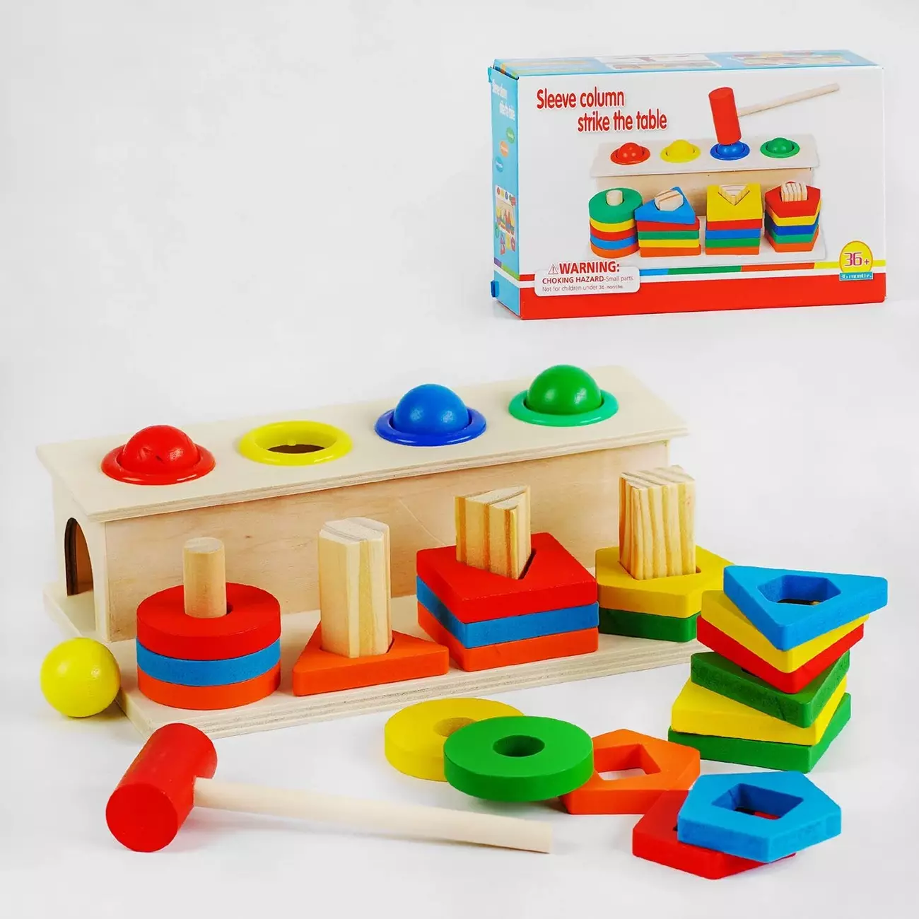 Дерев'яна гра "Логічна гра" C 55576 (48) геометричні кілочки, стукавка, у коробці
