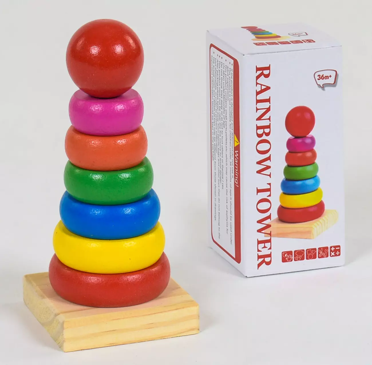 Класична пірамідка - це відмінний варіант для самих маленьких. Іграшка являє собою 6 різно кольорових дерев'яних кілець, нанизаних на основу, на вершині якого встановлено кулю. Пірамідка стане чудовим способом розвинути дрібну моторику, сприйняття форми й кольору та інших корисних навичок.