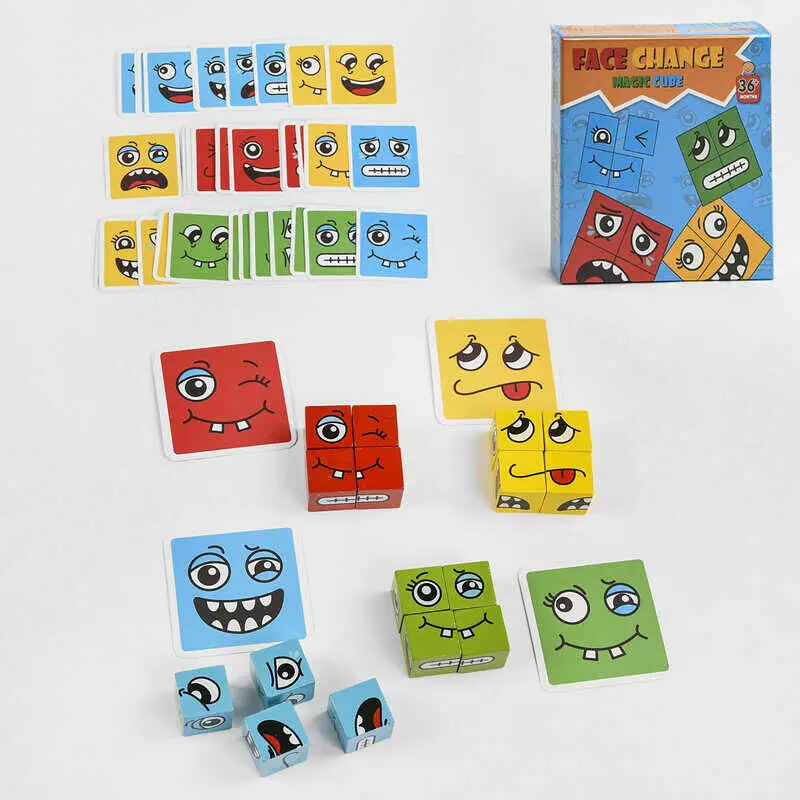 Дерев'яна гра С 49843 (60) ""Зміна облич"", 81 елемент, 16 кубиків, 64 картки, в коробці
