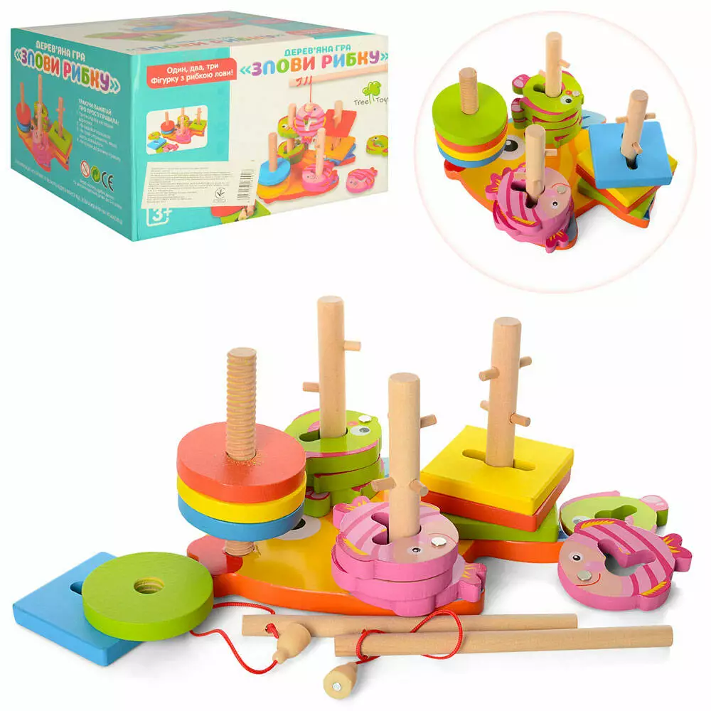 Дерев'яна іграшка Геометрика MD 0902 квадрати, кола, рибалка, кор., 20-16,5-12 см.