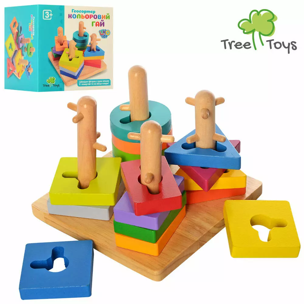 Дерев'яна іграшка Геометрика MD 2370 пірамідка-ключ, 16 фігур, кор. 16-16-11,5 см.