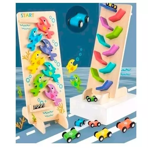 Дерев'яна іграшка Гра MD 1737 2в1 (лабіринт, трек), кульки, машинки, кор., 16-35,5-7 см.