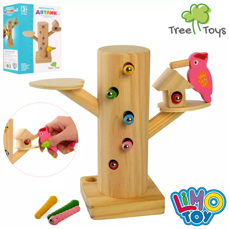 Дерев'яна іграшка Гра MD 2850 Дятел, магнітна, пеньок, гусениці, кор., 14-20-9,5см.