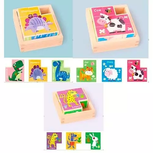 Дерев'яна іграшка Кубики MD 1857 пазли, 3 види (динозаври, домашні тварини, дикі тварини), кул.