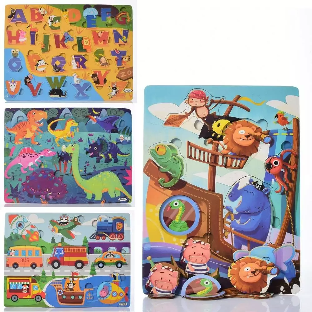 Дерев'яна іграшка Рамка-вкладиш MD 1550 4 види (3 види-пазли), кул., 30-23-0,5см.