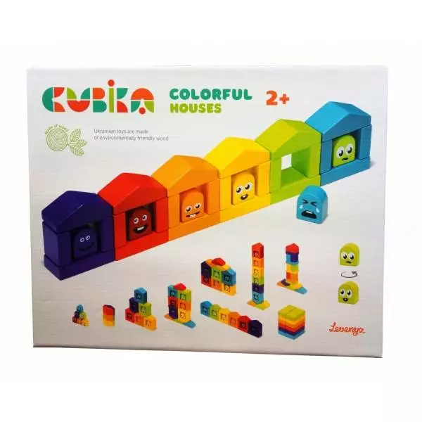 Дуже креативна новинка у ТМ "Кубіка" - кольорові будиночки. Я бачу тут не тільки конструктор, з якого можна будувати будиночки згідно інструкцій на коробці, а й ранній розвиток дитини в напрямку Марії Монтессорі в яких треба підбирати кольори. Адже обличчя у жителів будиночка двосторонні. Де правильно поселив - радіє, де не правильно - сумує. Все залежить від маминого підходу.