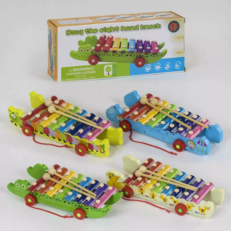 Дерев'яний Ксилофон на колесах С 39424 (48) 4 види, в коробці, ВИДАЄТЬСЯ ТІЛЬКИ МІКС ВИДІВ