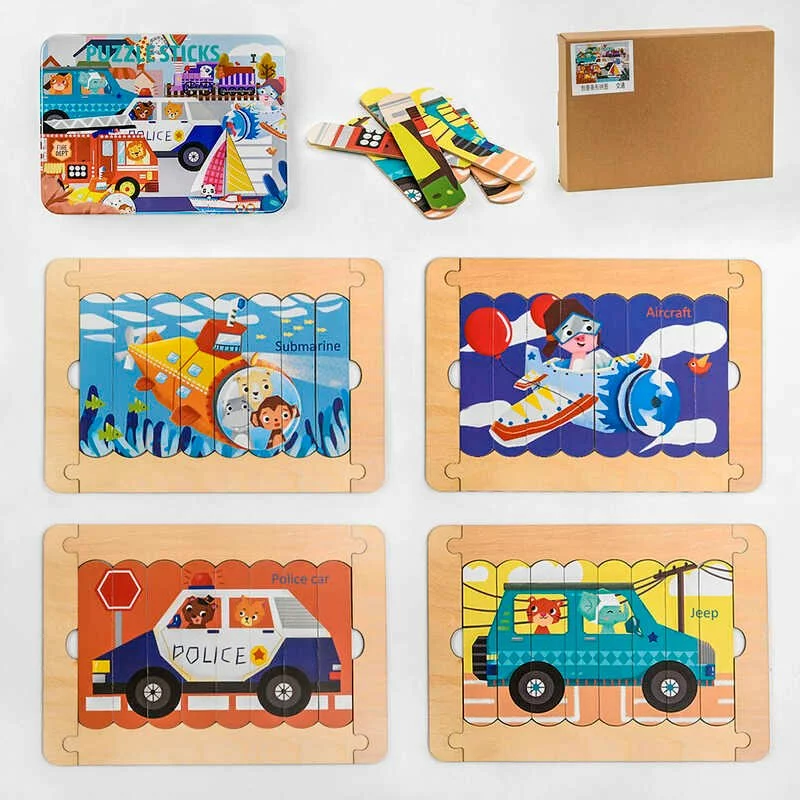 Дерев'яна гра С 47009 (48) ""Транспорт"", пазли-палички, двосторонні, в коробці