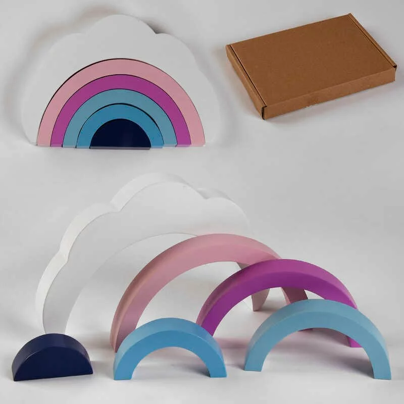 Дерев'яна Логіка С 47864 (42) пірамідка ""Райдуга та хмаринка"", 6 елементів, в коробці