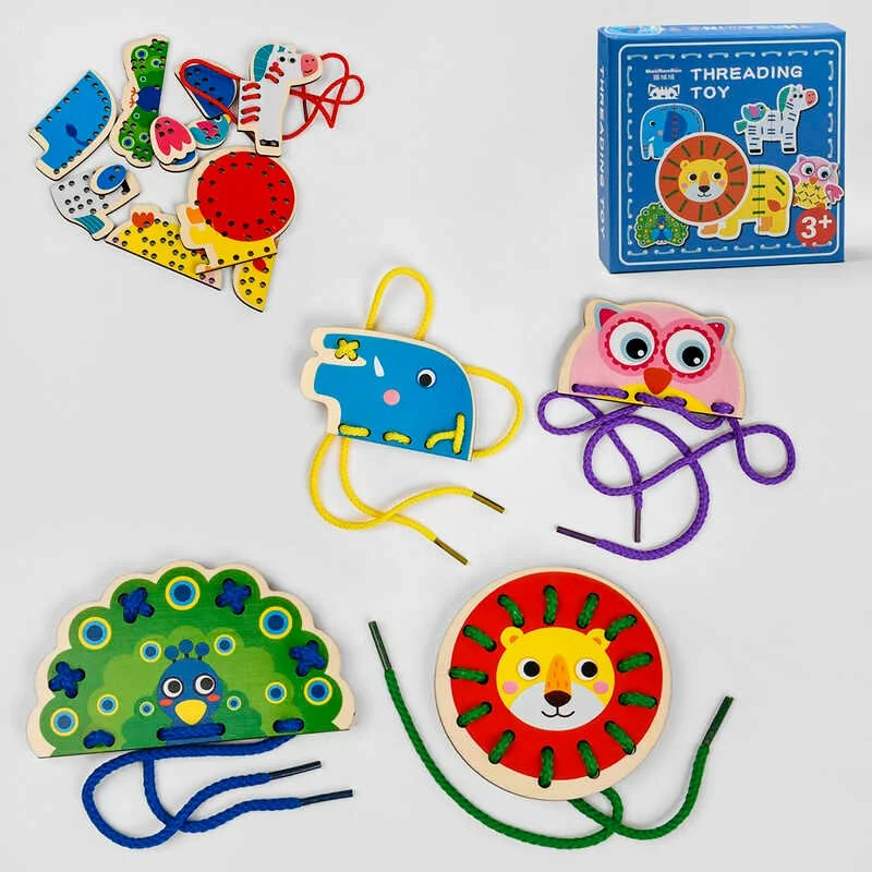 Дерев'яна Шнурівка С 48520 (48) ""Тварини"", 5 ігрових панелей, 5 шнурків, аксесуари, в коробці