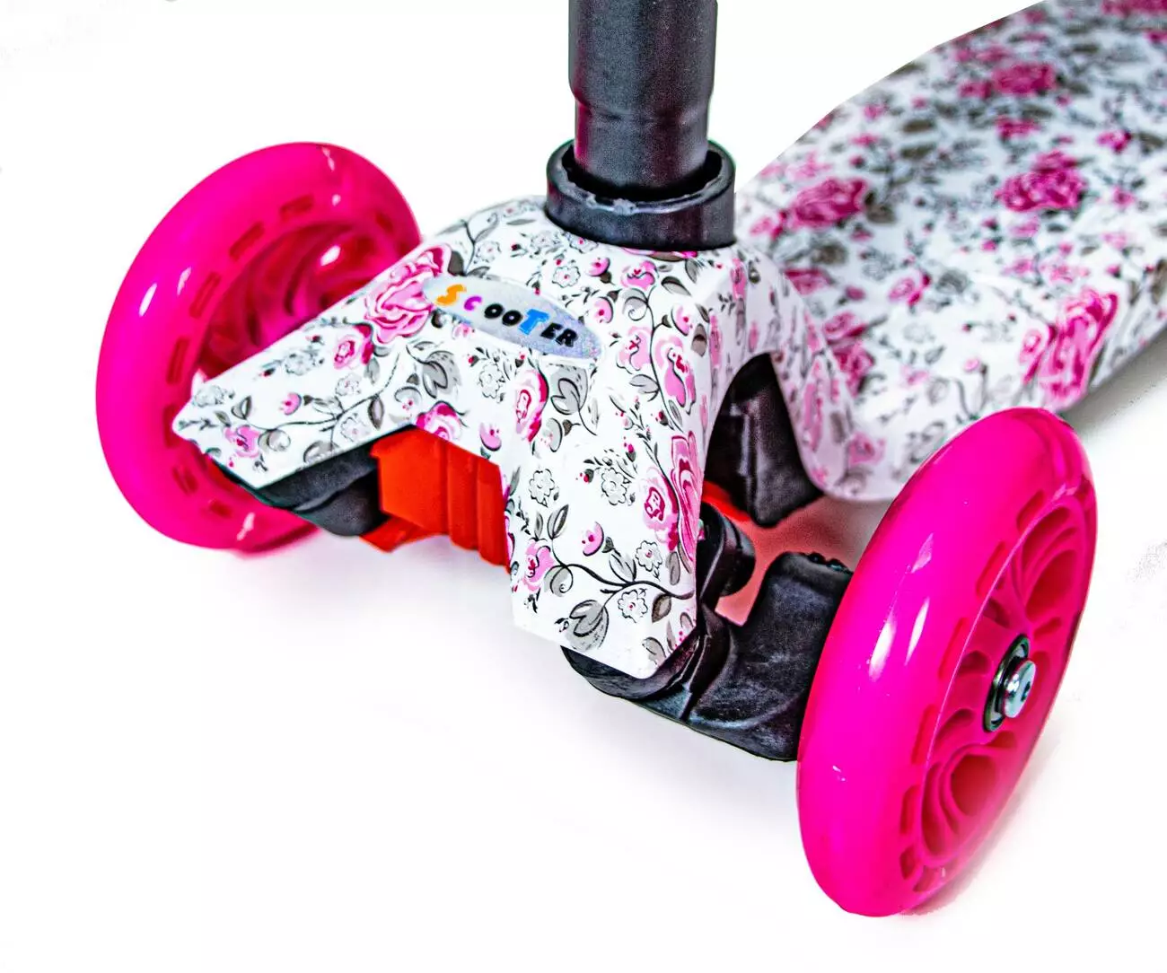 Детский самокат MAXI Flowers Roses Светящиеся малиновые колеса