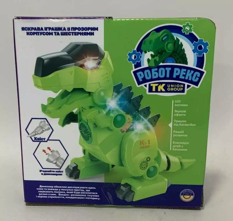 Динозавр музичний ""Робот Рекс"" 10419 (48) ""TK Group"", ОЗВУЧУВАННЯ УКРАЇНСЬКОЮ МОВОЮ, пісня, рухається, підсвічування, шестерні, рухомі елементи, в коробці