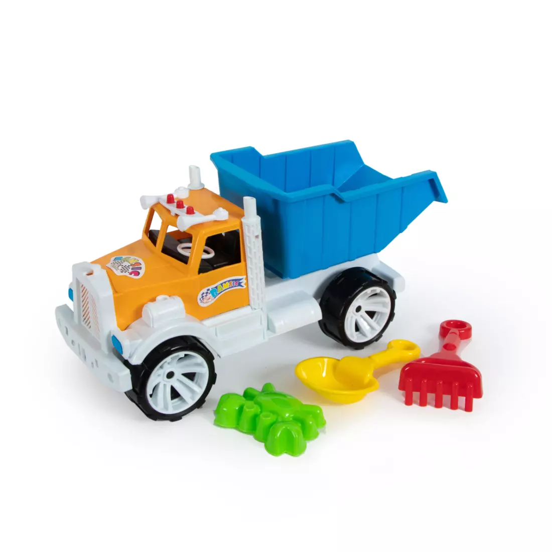 Бамсік маленький. У наборі вантажівка з рухомими елементами, лопатка, грабельки та пасочка. Упаковка Сітка. Вага в упаковці 717 г. Габарити в упаковці 43 x 17 x 20 см. Країна виробника Україна. Матеріал Пластик Комплектація Вантажівка, лопатка, граблі, пасочка.