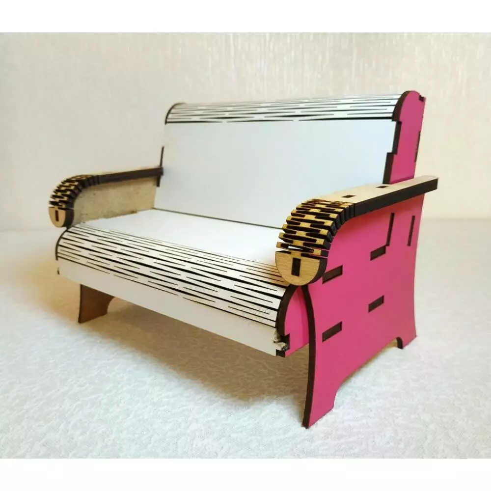 Диван для ляльок до 30 см (Барбі, Братц, Монстр Хай). Матеріал: ДВП ламіноване і шліфоване. Розмір: 13 * 19 * 12,5 см. Вага 237 г. Упаковка: пакет/коробка. Для дітей від 3-х років під наглядом дорослих (може містити дрібні предмети). Зберігати при t від 5 до 26 С, відн.вологість 50-80%. Тримати подалі від вогню, води і механічних пошкоджень. Термін придатності необмежений.