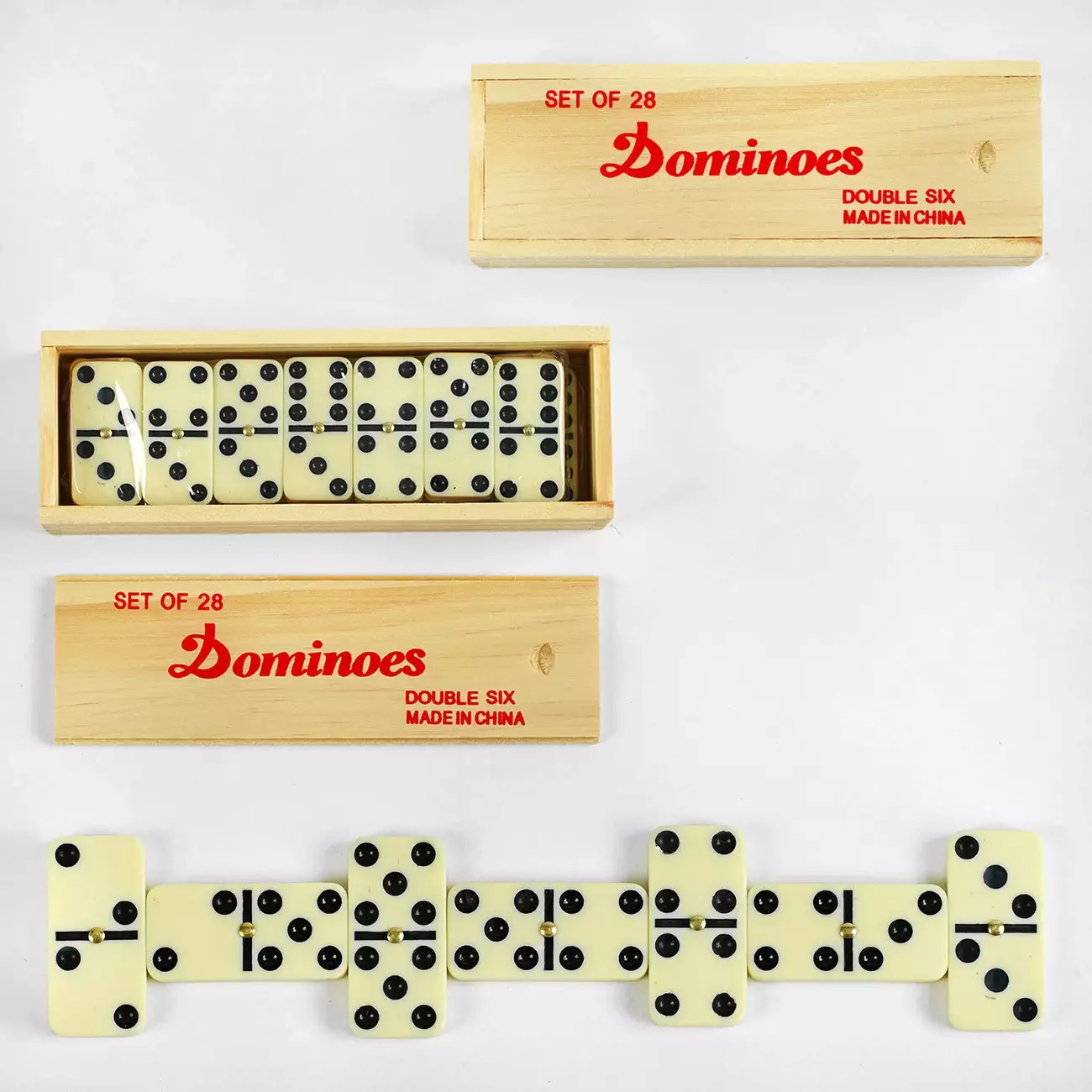 Доміно — це цікава логічна гра, в яку вміють грати як дорослі, так і діти, адже принцип виставляння доміношек досить простий, але при цьому не менш захопливий. А цей набір виконаний по-особливому гарно, камінці з різною кількістю очок зручно розташувалися в дерев’яній коробці, а самі гральні елементи виконані у кольорі слонової кістки та прикрашені золотими елементами. З таким доміно гра не тільки буде захопливою, як і завжди, але й грати камінцями буде дуже приємно, адже вони такі гарні! Особливості: - 28 доміношек; - гральні камінці знаходяться у дерев’яній коробці; - гарний дизайн; - доміно виготовлено з якісного матеріалу, який є безпечним для здоров’я дитини.