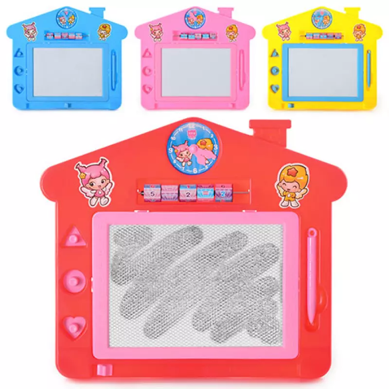 Дощечка для малювання 3051 - яскрава, магнітна дощечка для малювання у формі будиночка зацікавить маленьких художників. У набір входить дощечка, ручка для малювання і три магніту різної форми. Екран для малювання чорно - білий. Малювати можна не лише ручкою, але і магнітами. Витирати малюнок дуже легко, внизу екрану є спеціальний важіль, протягни його з одного боку в інший. Упаковка: пакет. Вік - Від 3 років Матеріал - Пластик Розвиває - Емоційний розвиток, концентрацію уваги, дрібну моторику Розмір упаковки - 31,5 х 26,5 х 2 см Країна виробник - Китай У комплекті - Дощечка для малювання, ручка, 3 магніти