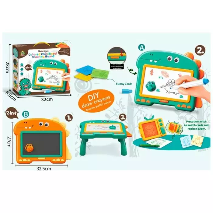 Дощечка для малювання 899-82Y 2в1,двухстор.(магніт.),стіл,крейда,воск.крейда,2кольори,кор.,32-28,5-6