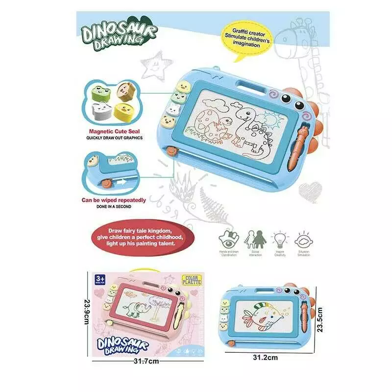 Дошка для малювання QS 28002-2 колір-СИНІЙ (72/2) “Динозавр”, магнітна, кольорова, 4 штампи, у коробці