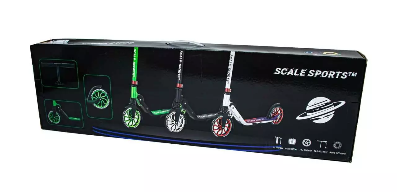 <p>Самокат двухколесный<strong> </strong>на амортизаторах<strong> Scooter Scale Sports SS-17</strong> разработан для подростков и взрослых американской компанией <strong>Scale Sports.</strong></p><br /> <p><strong>Особенности самоката Scooter Scale Sports SS-17</strong><strong>:</strong></p><br /> <ul><br /> <li>Складная конструкция;</li><br /> <li>Дзвонок на руле;</li><br /> <li>Задний ножной металлический тормоз;</li><br /> <li>Регулируемый руль;</li><br /> <li>Резиновые ручки;</li><br /> <li>1 амортизатора;</li><br /> <li>Ножка для парковки (подножка)<strong>;</strong></li><br /> <li>Нескользящее покрытие платформы ;</li><br /> <li>Максимальная нагрузка: 100 кг;</li><br /> </ul><br /> <p><strong>Технические характеристики самоката Scooter Scale Sports SS-17 :</strong></p><br /> <ul><br /> <li>Тип самоката: городской;</li><br /> <li>Количество шт., тип колес: 2 литых;</li><br /> <li>Материал колес: полиуретан;</li><br /> <li>Размер переднего и заднего колеса – 200 мм;</li><br /> <li>Габаритный размер (ДхШхВ): 88х38х86-96 см;</li><br /> <li>Высота регулируется в 3 положениях: 86<a href="tel:91/98/105">/91/</a>96 см;</li><br /> <li>Размер рабочей поверхности платформы: 30х11 см;</li><br /> <li>Вес самоката: 4,3 кг;</li><br /> <li>Размер коробки: 98х13х30 см;</li><br /> <li>Материал рамы: алюминий;;</li><br /> <li>Возрастная группа: для подростков и взрослых, <strong>7</strong>+</li><br /> </ul><br />