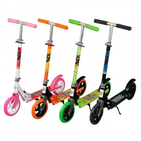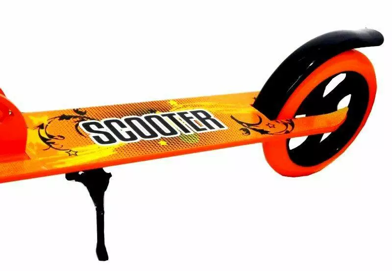 <p><strong>Двухколесный самокат на большых</strong> <strong>20см колесах оранжевого цвета</strong>- яркий и удобный самокат, оснащен мягкими полиуретановыми колесами, ножным тормозом и возможностью регулировки руля по высоте (3 положения от 75 до 99 см). Стильный дизайн привлечёт внимание всех окружающих и понравится Вашему ребёнку. <strong>Складной двухколесный самокат 460</strong> имеет прочную конструкцию, 2 колеса обеспечивают максимальную маневренность. В самокате регулируется ручка что позволяет кататься детям постарше. </p><br /> <p><strong>Характеристика:</strong><br /><br /> Колеса: PU - МЯГКИЕ, НЕ СТУЧАТ!<br /><br /> Материал самоката: алюм+сталь<br /><br /> Диаметр колес – 20 см. Ширина колеса - 3 см.<br /><br /> Руль регулируется в 3 положениях: от 75 до 99 см.<br /><br /> Ширина руля - 32 см.<br /><br /> Диаметр ручек 4 см.<br /><br /> Размеры подложки: длина 46 см, ширина -11 см,<br /><br /> Высота от пола до подножки - 12 см.<br /><br /> Ножной тормоз.<br /><br /> Подставка.<br /><br /> Складная конструкция.<br /><br /> Размер коробки: 78*26*12 см.<br /><br /> Максимальная нагрузка: 100 кг.<br /><br /> Самокат оснащен боковой ножкой для вертикальной парков</p><br />