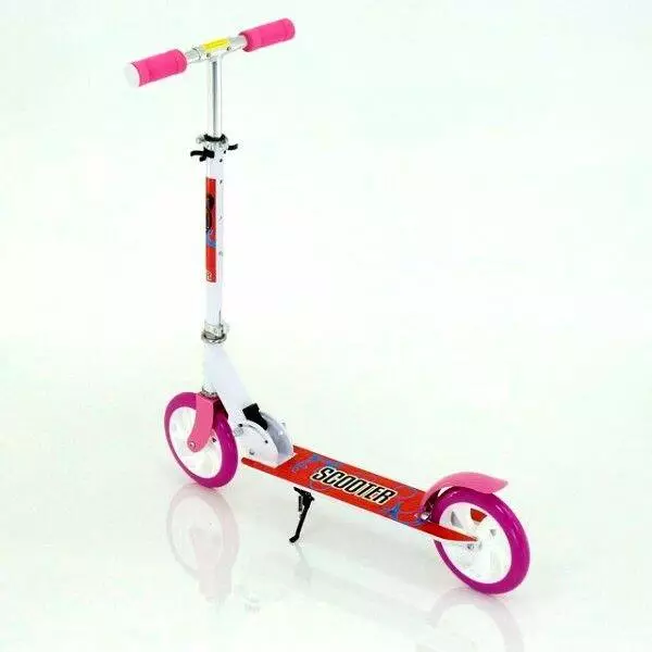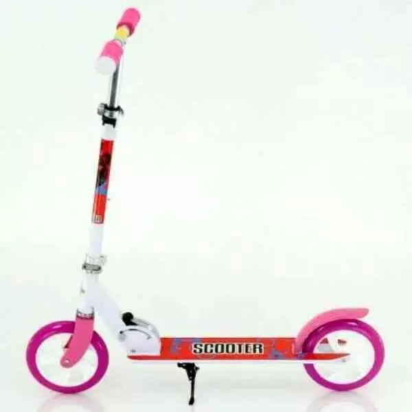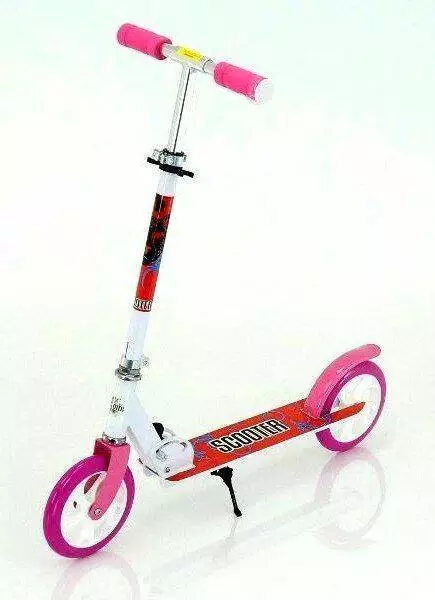 <p><strong>Двухколесный самокат на большых</strong> <strong>20см колесах бело розового цвета</strong>- яркий и удобный самокат, оснащен мягкими полиуретановыми колесами, ножным тормозом и возможностью регулировки руля по высоте (3 положения от 75 до 99 см). Стильный дизайн привлечёт внимание всех окружающих и понравится Вашему ребёнку. <strong>Складной двухколесный самокат 460</strong> имеет прочную конструкцию, 2 колеса обеспечивают максимальную маневренность. В самокате регулируется ручка что позволяет кататься детям постарше. </p><br /> <p><strong>Характеристика:</strong><br /><br /> Колеса: PU - МЯГКИЕ, НЕ СТУЧАТ!<br /><br /> Материал самоката: алюм+сталь<br /><br /> Диаметр колес – 20 см. Ширина колеса - 3 см.<br /><br /> Руль регулируется в 3 положениях: от 75 до 99 см.<br /><br /> Ширина руля - 32 см.<br /><br /> Диаметр ручек 4 см.<br /><br /> Размеры подложки: длина 46 см, ширина -11 см,<br /><br /> Высота от пола до подножки - 12 см.<br /><br /> Ножной тормоз.<br /><br /> Подставка.<br /><br /> Складная конструкция.<br /><br /> Размер коробки: 78*26*12 см.<br /><br /> Максимальная нагрузка: 100 кг.<br /><br /> Самокат оснащен боковой ножкой для вертикальной парков</p><br />