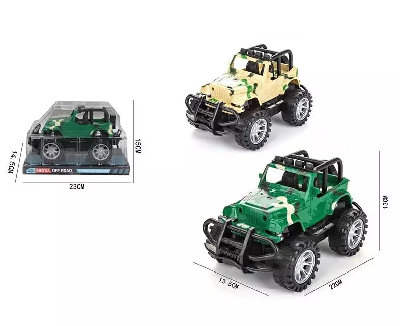 Іграшковий джип - це зменшена копія реальної машини, яка створена, щоб надихати дітей на активну гру, пригоди та безмежну фантазію. Його дизайн надає відчуття потужності і непереможності. Цей джип готовий впоратися з будь-якими випробуваннями, він викликає захват своєю яскравістю, деталізацією та реалістичним виглядом. Корпус джипа виготовлений з високоякісного пластику, що робить його досить міцним та довговічним. Особливості: - позашляховик оснащений інерційним механізмом; - гарно опрацьовані деталі додають іграшці реалістичного вигляду; - усередині кабіни є місце для кермування, зручне сидіння для водія і деталі, які створюють ілюзію реального джипа; - великі колеса з протектором; - відкритий салон; - іграшка виготовлена з якісного пластику, здатного витримувати активні ігри.