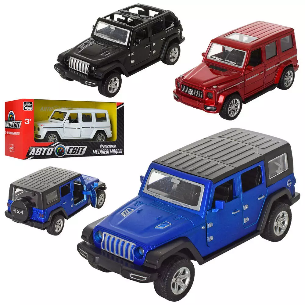 Джип AS-2458 АвтоСвіт, мет., інерц., гум. колеса, відчин. двері, 3 види, кор., 15,5-7,5-6,5 см.