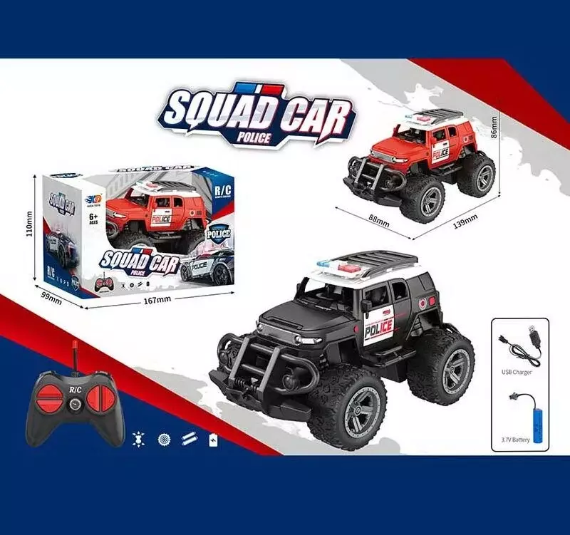 Потужний поліційний джип сьогодні вийшов у патруль, і тільки-но почалася його зміна, як повз нього хтось промчався на величезній швидкості, ось і перший правопорушник, якого потрібно негайно затримати. А щоб іграшковий джип швидше наздогнав правопорушника, скористуйся пультом дистанційного керування. Іграшка має великі гумові колеса, що дозволяють їй проїхати майже будь-де, а завдяки тому, що вона працює від батарейки, яку можна перезаряджати, вона прослужить довго і стане улюбленою іграшкою дитини. Завдяки своєму маленькому розміру, джип зручно брати з собою, і він легко проїжджатиме і під ліжком, і у самих незручних кутах. Він не тільки виглядає як справжній, що точно сподобається поціновувачам автомобілів, але й підсвічується червоним кольором, щоб захопити увагу дитини. Особливості: - реалістичний дизайн; - яскраві кольори; - машинка має великі гумові колеса з фактурним візерунком; - іграшка працює від пульта 27 MHZ; - пульт працює від 2-х батарейок типу “АА” (не додаються); - іграшка їде вперед/назад та повертає праворуч/ліворуч; - під час їзди джип підсвічується червоним кольором; - іграшка працює від батарейки, що перезаряджається (додається); - щоб вставити батарейку, потрібно зняти всю верхню частину іграшки; - до іграшки додається USB-кабель, з допомогою якого можна перезаряджати батарейку; - машинка виготовлена з якісного пластику, який є безпечним для здоров’я дитини.