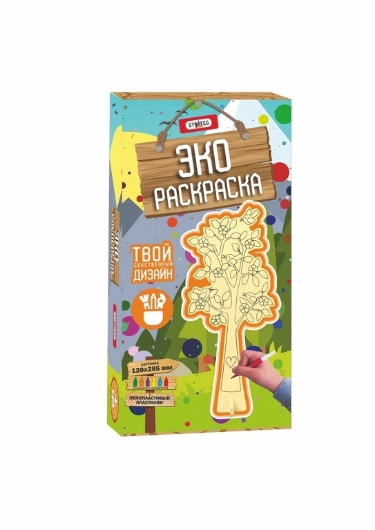 Вік: від 6-ти років Матеріал: картон Комплект: картина, 6 фломастерів, пінопластовий пластилін Розміри картини: 28.5 х 12 см Розмір упаковки: 32 x 12 x 3 см Розфарбування - це не тільки картина, але і весела і цікава історія, яку кожен малюк може створити сам за допомогою еко-розмальовки «Дерево» (Стратег Арт.5002). Дитина сам зможе визначити, як буде виглядати первісна картинка в результаті його творчих зусиль, підібрати кольори, використовувати для прикраси різні матеріали. Сам процес допоможе малюкові поринути у світ фантазії, навчить концентрувати увагу, розрізняти і комбінувати кольори, привчить до акуратності і наполегливості в досягненні мети. Незайвим буде і фізичний розвиток - координація рухів і зусилля маленьких пальчиків при малюванні. Розфарбовування картинок стане не просто веселою розвагою, але і допоможе розвинути творчі здібності, впевненість в своїх силах і сформувати особистість дитини. У наборі не тільки кольорові фломастери, а й такий цікавий матеріал, як кольоровий пінопластовий пластилін - з його допомогою зображення придбає обсяг. Передбачено підставу, за допомогою якого фігурну картинку можна встановити вертикально. Готова картина з яскравим деревом стане прикрасою дитячої кімнати або незабутнім подарунком.