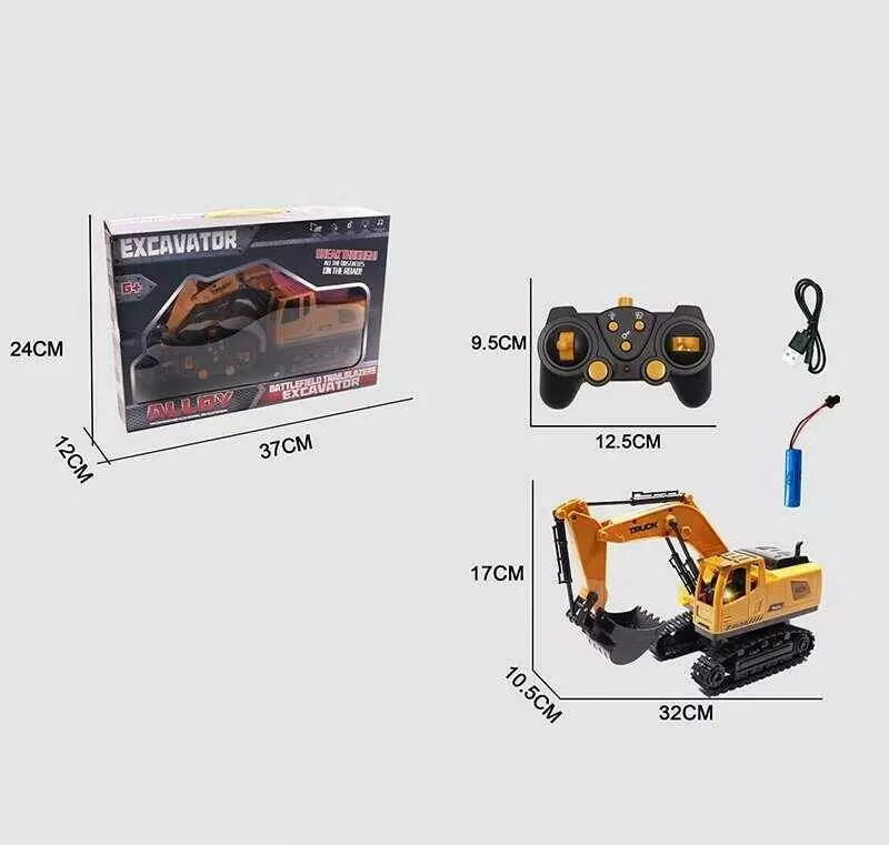Екскаватор на радіокеруванні 580-24 (24/2) підсвічування, звук, масштаб 1:18, акумулятор 3.7 V, пульт 27 MHz, USB-кабель, гумові гусені, в коробці