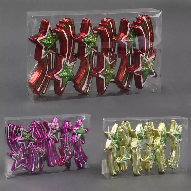 Ёлочная игрушка С 21970 (200) "Звёздочки" 6шт в упаковке, 3 цвета