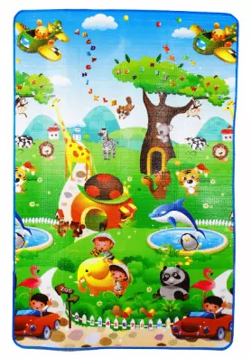 Призначений для дітей від 6-ти місяців. Двосторонній килимок, відмінно підходить для ігор на вулиці і будинки. Килимок не промокає і є термостійким. Матеріал: етіленвінілацетат (EPE). Розмір: 120 * 180 см. Товщина: 0,5 см. Двосторонній килимок, виконаний з сучасного синтетичного матеріалу на основі EРЕ-полімеру, який характеризується такими властивостями, як вологостійкість, еластичність, пружність, висока зносостійкість і мала теплопровідність. Матеріал не викликає алергії і стійкий до впливу грибків і бактерій. Килимок є ідеальним ігровим майданчиком для дітей: поверхня килимка пом'якшує удари при падінні дитини, захищає від холоду, легко миється і не пропускає вологу. Краї килимка прострочені і оброблені спеціальною стрічкою з міцного матеріалу. Килимок відповідає вимогам технічного регламенту з безпеки, має Декларацію відповідності, висновок СЕС і рекомендований до застосування. Інструкція: перед використанням промити водою з нейтральним дитячим засобом для миття і просушити. Попередження: не залишайте дітей без нагляду дорослих. У разі проковтування дрібних частин килимка негайно звернутися до лікаря. Килимок використовувати далеко від джерел тепла.