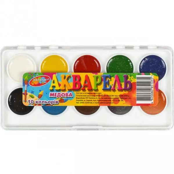 Фарба акварельна 10 кол.пласт.кор. "Колорит"