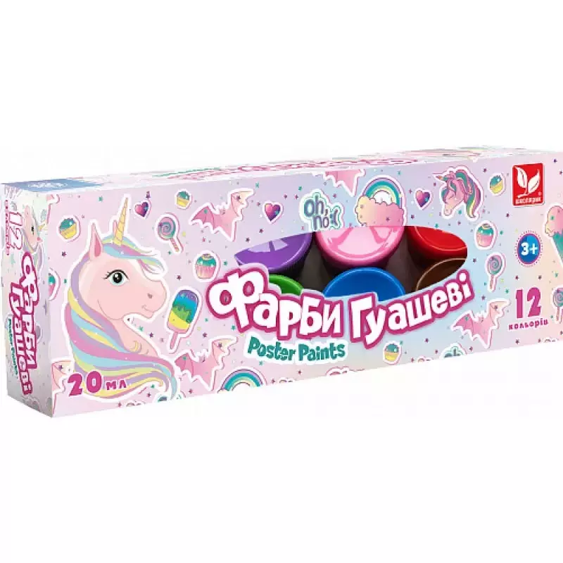 Фарби гуашеві Unicorn 12 кольорів по 20 мл