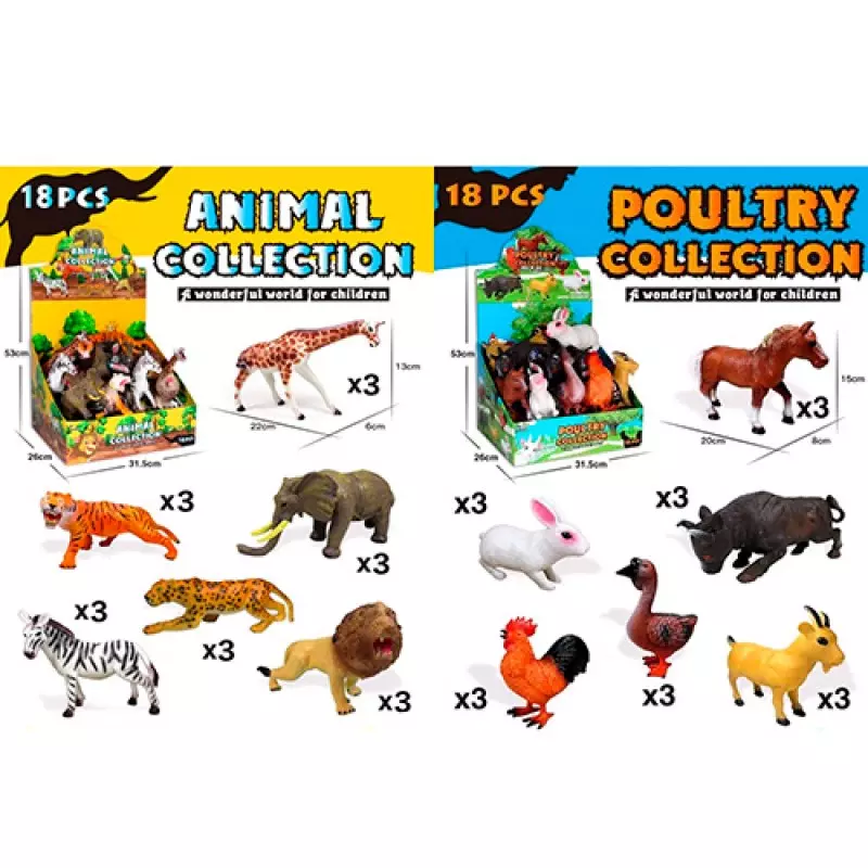 Фігурка ND-601-603 тварини, 2 види (дикі/домашні), 18 шт. (6 видів) в диспл., 31-26-20 см.