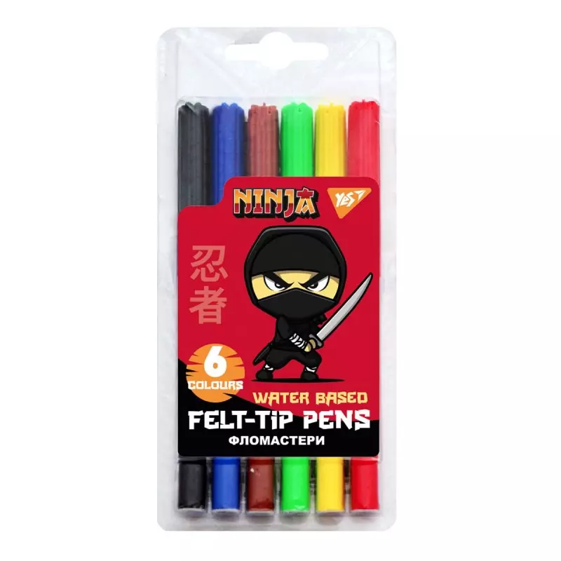 Фломастери YES 6 кольорів "Ninja"