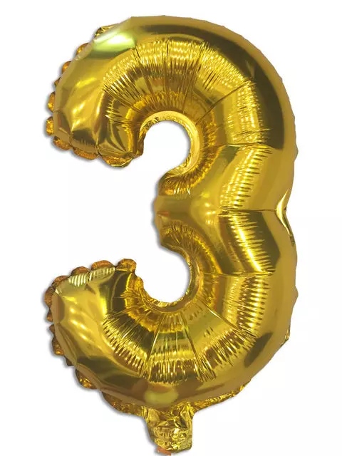 Фольгована кулька у вигляді цифри "3" з клапаном Колір: золото Розмір: 35 см Надувати можна за допомогою компресору або ручного насосу Виробник: Китай